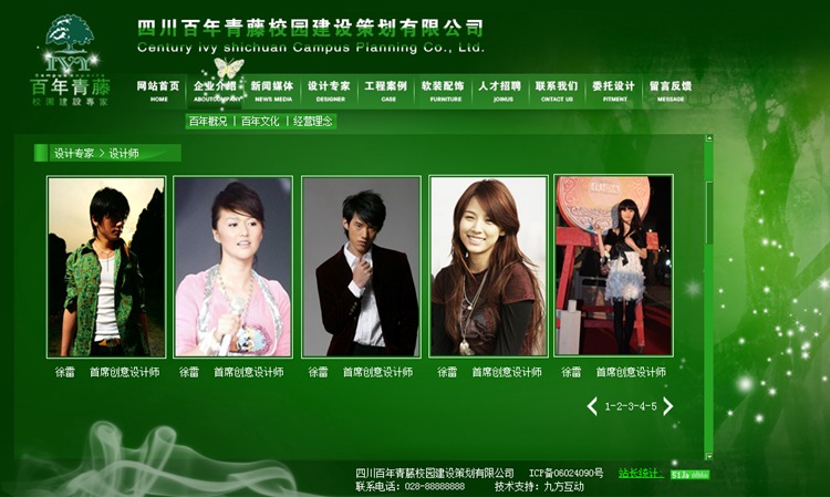 百年青藤校园建设策划有限公司,是专业从事校园建设建筑设计、规划设计、室内设计具有甲级建筑设计资质的综合企业,拥有专业的项目细分设计团队,其核心设计团队(该团队曾参与中央电视台《交换空间》及四川电视台《四川房地产》等设计节目). 设计作品遍布全国,公司素以严谨的管理,高效的作风和顶尖的作品著称于业内.