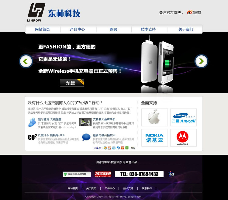 四川东林科技有限公司成立于2004年,在过去的五年中一直专注于无线充电技术的研发,致力于将最富创意和最具魅力的无线充电产品带给全世界的消费者以及在便携式电源领域提供最佳的无线充电解决方案。拥有多项专利,LINPOW(翎普)无线充电器开创了手机无线充电的全新应用,并得到了国内外客户的广泛接受和良好赞誉。