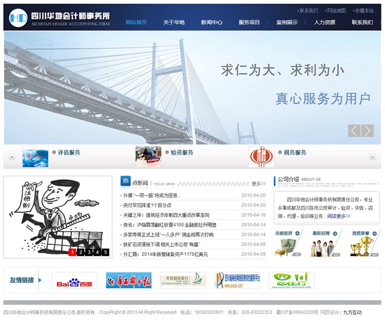 四川华地会计师事务所有限责任公司,专业从事成都及四川各市公司审计、验资、评估、咨询、代理、培训等业务活动,是经四川省工商行政管理部门认证并取得企业审计、验资、评估、代理记账、财务咨询等资质。