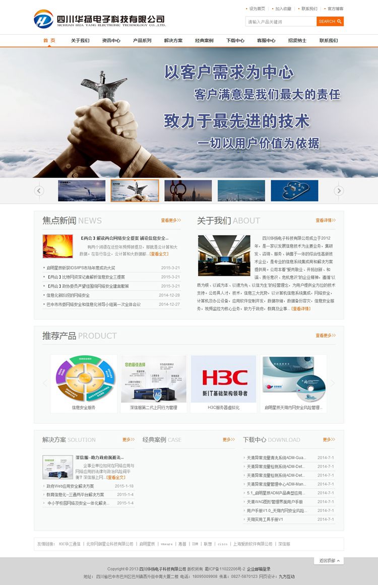 四川华扬电子科技有限公司成立于2012年,是一家以发展信息技术为主要业务,集研发、咨询、服务、销售于一体的综合性高新技术企业,是专业的信息系统集成商和解决方案提供商。