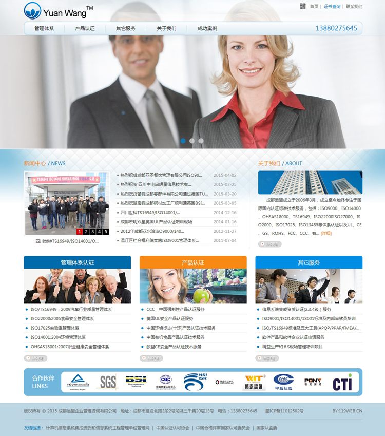 远望企业管理咨询有限公司是成立于2006年3月,成立至今始终专注于国际国内认证标准技术服务,服务的标准有ISO9000\ISO14000\OHSAS18000\TS16949\ISO22000\ISO27000\ISO20000\ISO17025\ISO13485\CMMI等体系认证以及UL、CE、GS、ROHS、FCC、CCC、有机、十环等国际国内产品认证。公司目前咨询的企业突破1000家客户,咨询的行业有:食品、建筑、机械、汽配、光电、电子、化工、医疗、第三服务业等行业,公司目前拥有25名专职和兼职咨询师、培训讲师,且均具有5年以上的咨询实战经验。我公司与国际国内知名的认证机构建立了长期的合作伙伴关系如TUV、SGS、BSI、AQA、CQC、CEPREI、ZJQC等认证机构。