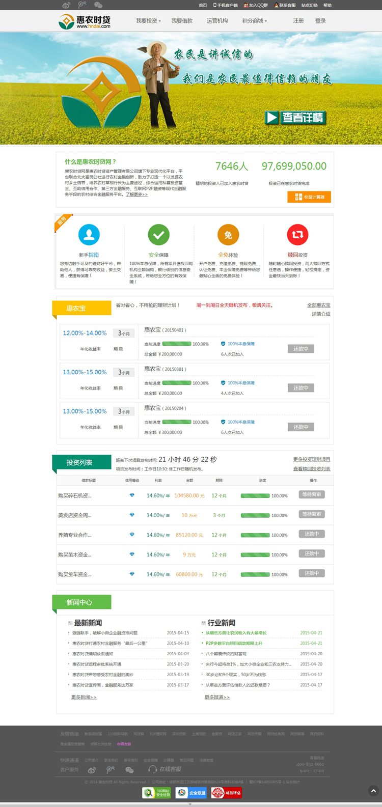惠农时贷网是惠农时贷资产管理有限公司旗下专业现代化平台,平台联合北大富民公社进行农村金融创新,致力于打造一个以发掘农村乡土信誉,培养农村草根行长为主要途径,综合运用私募投资基金、互助信用合作、第三方金融服务、互联网P2P融资等现代金融服务手段的农村综合金融服务平台。