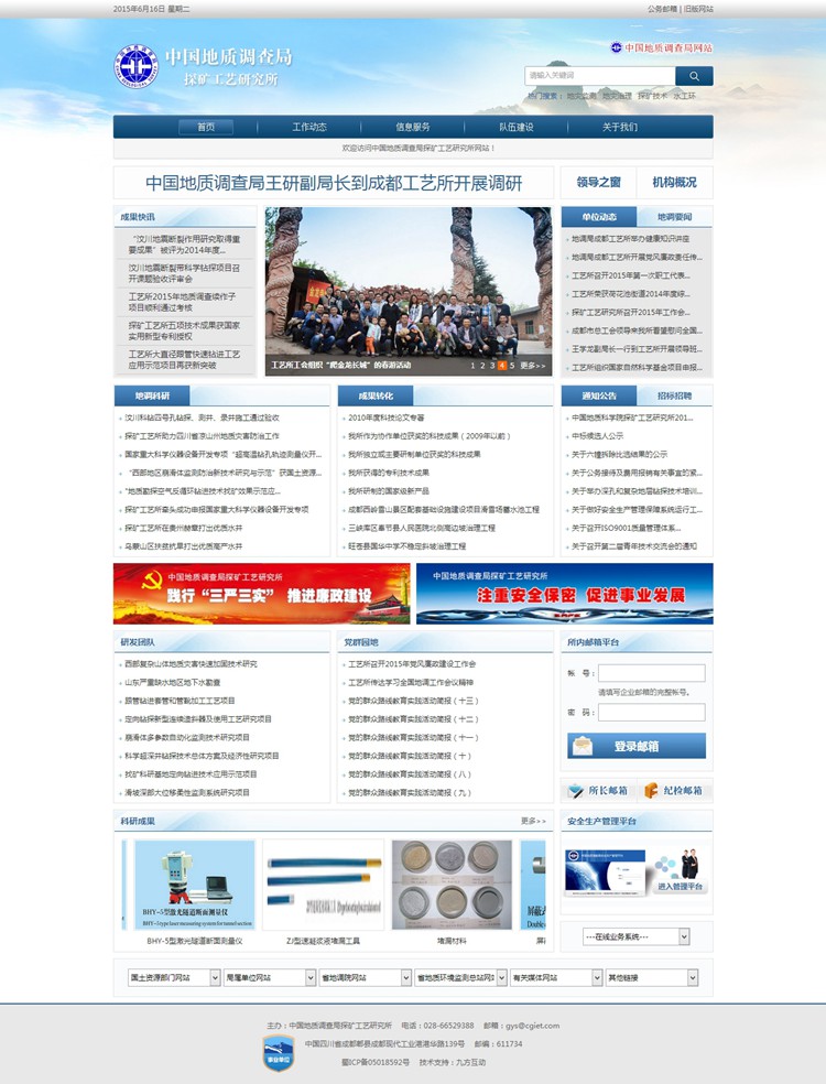 中国地质调查局探矿工艺研究所(简称地调局成都工艺所)成立于1978年8月,是中国地质调查局直接管理的公益性地质调查和战略性矿产资源勘查的技术支撑机构,主要从事地质灾害防治和矿产资源勘查技术方法、器具设备的研究与推广应用,开展西南地区地质环境与地质灾害的调查评价工作。