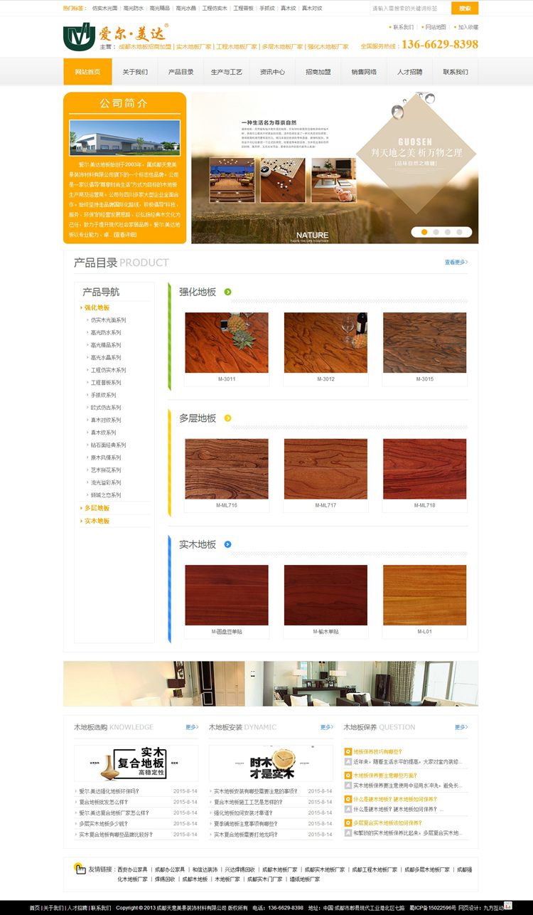 成都市天意美景装饰材料有限公司(爱尔.美达地板)工厂坐落于成都市郫县现代工业港北区港北七路。其成立于2000年初,是一家专业从事强化木地板研发、制造、销售、服务一体的综合型企业。